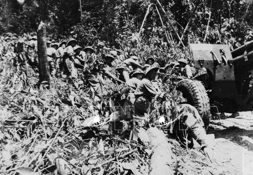 Bộ đội ta kéo pháo nặng hàng chục tấn vượt núi, xuyên rừng vào chiến trường Điện Biên Phủ. Ảnh tư liệu: TTXVN