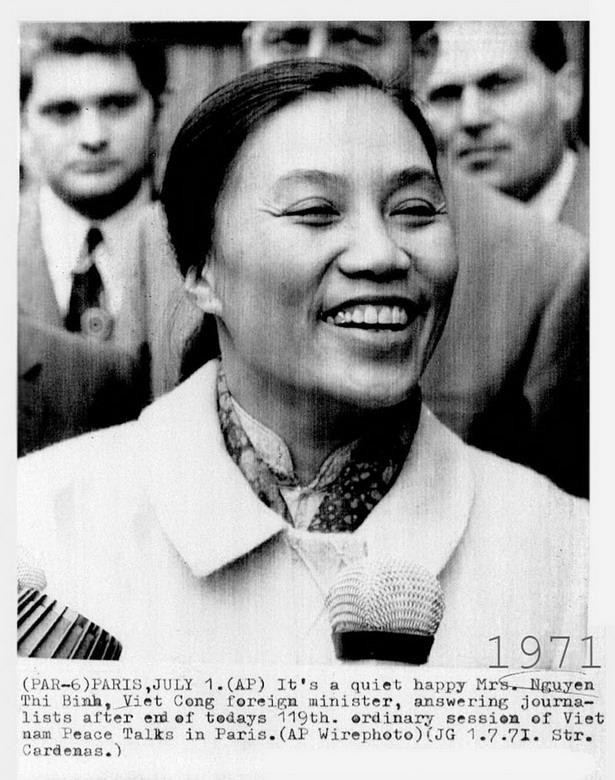 Hình ảnh bà Nguyễn Thị Bình được phóng viên ghi lại ngày 1/7/1971.