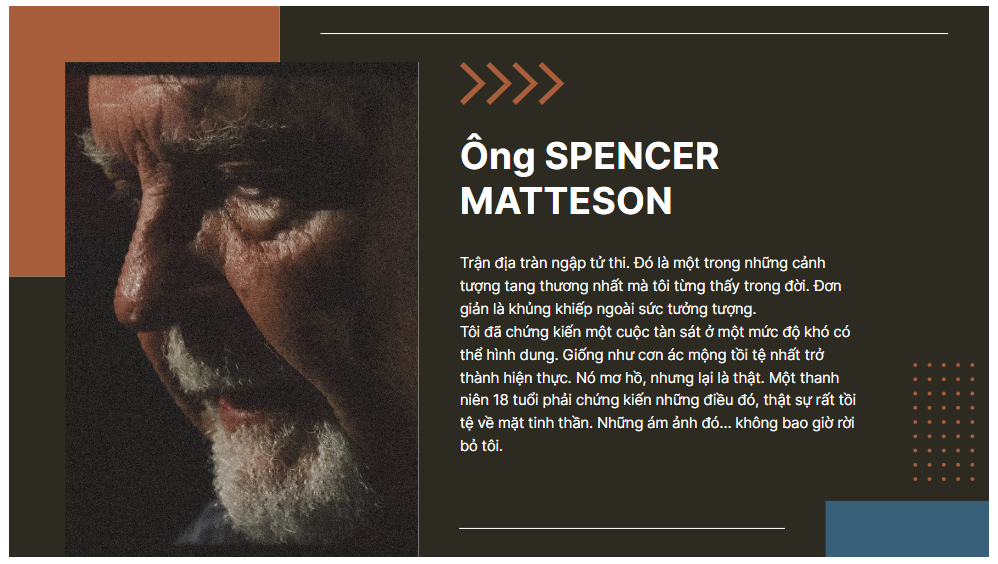 Những cựu binh Mỹ bị ép buộc tham gia vào cuộc chiến tranh phi nghĩa luôn bị ám ảnh bởi những kí ức tang thương, những kí ức ấy tưởng như rời rạc nhưng nó đã trở thành nguồn thông tin vô cùng quý giá giúp cho quá trình tìm kiếm hài cốt liệt sĩ được diễn ra suôn sẻ hơn. Điều đó cũng làm bớt đi phần nào sự ăn năn, những ám ảnh vô hình vì chiến tranh.